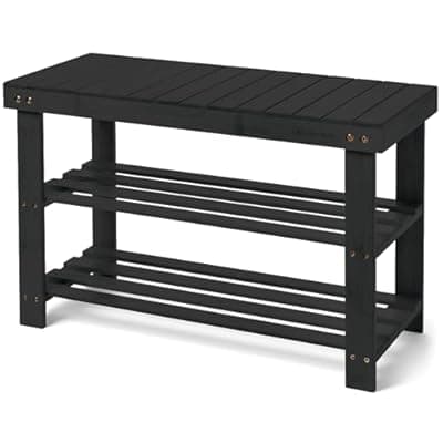 50.0% Off[Leaf & Grain] Leaf & Grain Bamboo Shoe Rack - Shoe Storage Bench for Front Door Entrance – Entryway Bench with Shoe Shelf, Shoe Storage Organizer, Wooden Shoe Rack, Durable Shoe Bench for Home (Black)