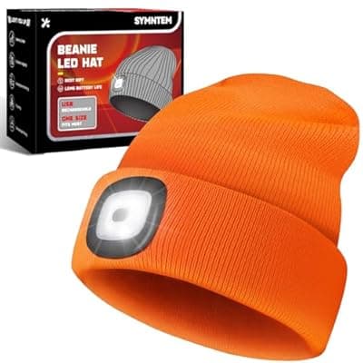 50.0% Off[SYMNTEM] SYMNTEM Unisex Beanie Hat with Light, Rechargeable Headlight Cap, Valentines Day Gifts for Him, Cool Gadget Gifts for Him, Birthday Gifts for Women, Gifts for Men, Orange
