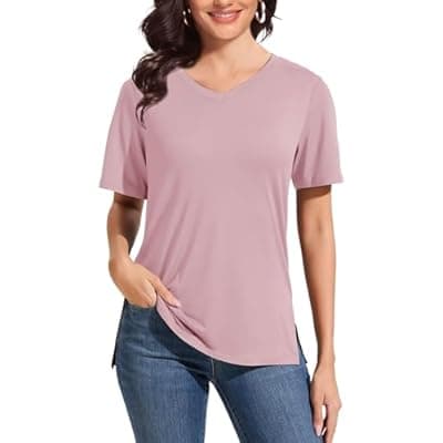 50.0% Off[Herou] Herou Summer Women Casual Short Sleeve Tops T-Shirts Tees with Side Split
