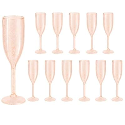 Charming Plastic Wine Glasses: Champagne flutes set include 12 rose gold fine sparkling champagne plastic wine glasses, providing ample quantity to meet your daily use and replacement needs. A suitable champagne cup is the icing on the cake. Plastic wine glasses not only carry the wine, but also carries the laughter and blessings | Ideal Champagne Glasses: Champagne cups are undoubtedly an elegant and practical gift choice. For the pursuit of personalized you, solid color champagne cup is to pro