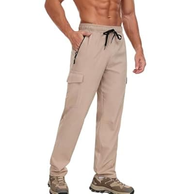 50.0% Off[TOIUUI] Men Lightweight Joggers Pants Hiking Zipper Pockets Quick Dry Runing Exercise Elastic Waist Sweatpants Cargo