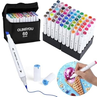 50.0% Off[OLINGYOU] OLINGYOU 60 Colors Alcohol Markers with Base Dual Tip Drawing Markers for Comics Coloring Sketching Illustration,