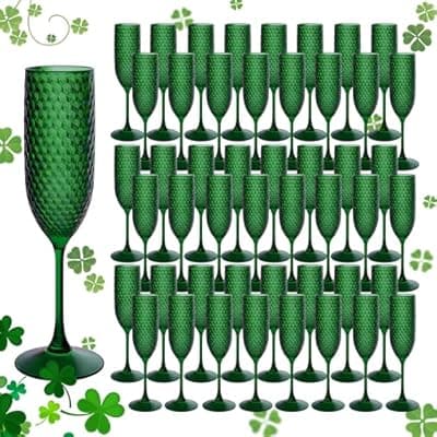 30.0% Off[LEYIQU] LEYIQU Plastic Champagne Flutes 7oz, Unbreakable Champagne Glasses Bulk, Reusable Crystal Drinking Wine Glasses for Wedding, Chrismas, Party, Valentineās Day (48, Dark Green)