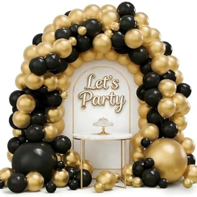 50.0% Off[AXXIIANG] Black and Gold Balloon Garland Arch Kit, 160PCS Black Gold Latex Balloons for New Year Wedding Anniversary Birthday Party Decorations