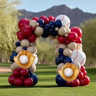 50.0% Off[AXXIIANG] Baseball Balloon Garland Arch Kit, Navy Blue Red Nude Balloon Arch with Baseball Glove Foil Balloons for Boys Girls Birthday Baseball Themed Party Decorations