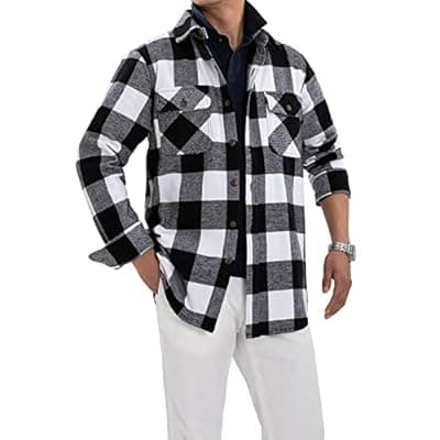 50.0% Off[ZENTHACE] Men's Heavyweight Buffalo Plaid Flannel Shirt Casual Button Down Brushed Flannel Shirts,100% Cotton