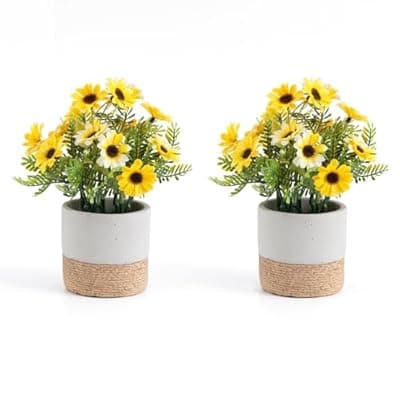 10.0% Off[Fuxdre] Fuxdre Artificial Potted Plants with 2 Pack, The Daisy Flower for Bathroom Shelf Decor, Decorative Plants for Home Living Room Office Bedroom Table Tray Shelve Farmhouse Decor Indoor(Sunflowers)