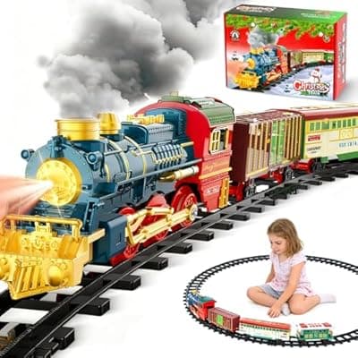 50.0% Off[kenvc] Train Set - Train Set Toys for Boys with Smokes, Lights and Sound, Toy Train Set for Under Christmas Tree, Toddler Model Trains for 3 4 5 6 7 8+ Years Old Kids Toys Gifts