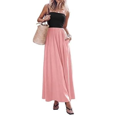 50.0% Off[PRETTYGARDEN] PRETTYGARDEN Women's 2026 Spring Strapless Maxi Dresses Patchwork Long Flowy Pockets Elegant Going Out Summer Tube Top Dress