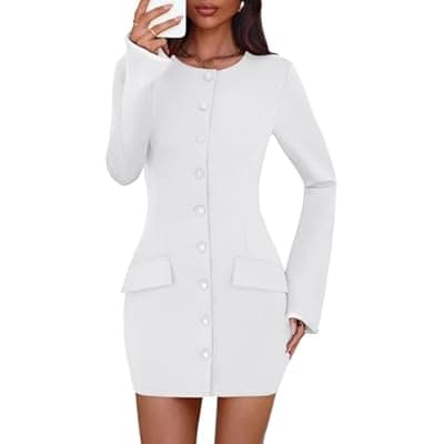 50.0% Off[Lazysmile] Lazysmile Women's Casual Dresses Long Sleeve Boat Neck Button Down Bodycon Mini Fall Party Club Cocktail Dresses for Women