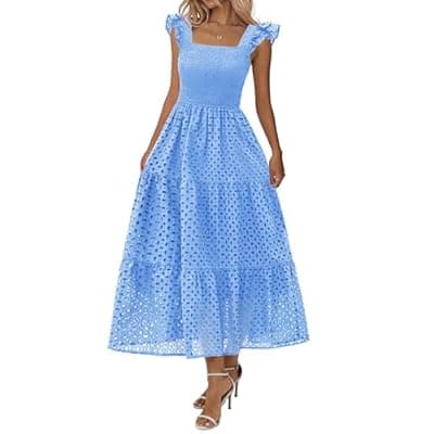 50.0% Off[Lazysmile] Lazysmile Womens Summer Maxi Dress Square Neck Ruffle Cap Sleeve Hollow Out Eyelet Smocked Tiered A Line Boho Sundress