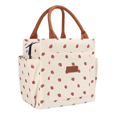 40.0% Off[Joymee] Joymee Lunch Bag Women Insulated Lunch Box Cute Corduroy Reusable Leakproof Large Capacity Lunch Tote Bag for Women Men Adult with Bottle Holder and Side Pockets for Work - Corduroy Strawberry