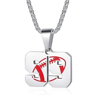 50.0% Off[Rehoboth] Rehoboth Football Rugby Jersey Number 0-99 Pendant Necklace for Women Men 22+2 Inch Adjustable Stainless Steel Chain