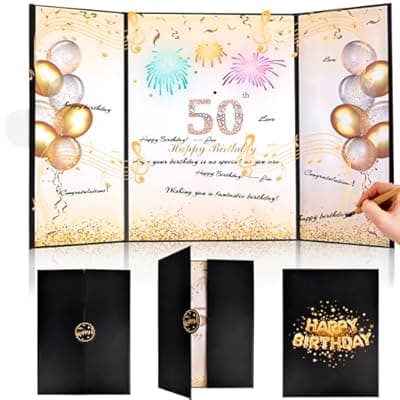 50.0% Off[Nerien] 50th Birthday Decorations for Men Women - Sparkling Firework Lights & Music Cheers to 50 Years Guest Book Card, Happy Birthday Decor Party Favors Banner, 50th Gifts Black and Gold Birthday Decoration