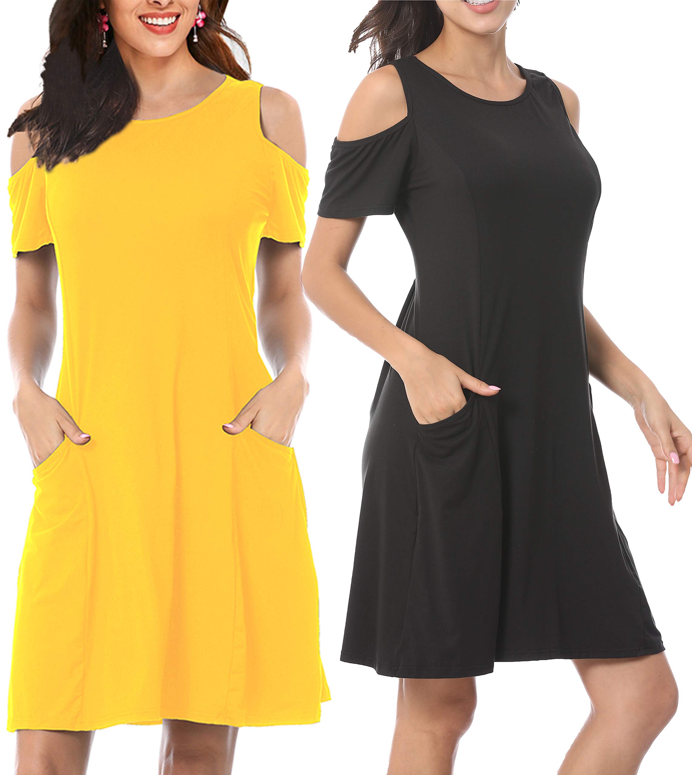 Opuntia Women’s Summer Dress with Pockets – Casual Loose Swing Elegant Beach Party Wedding Knee Length Plus Size Shirt Dress- Amazon.com