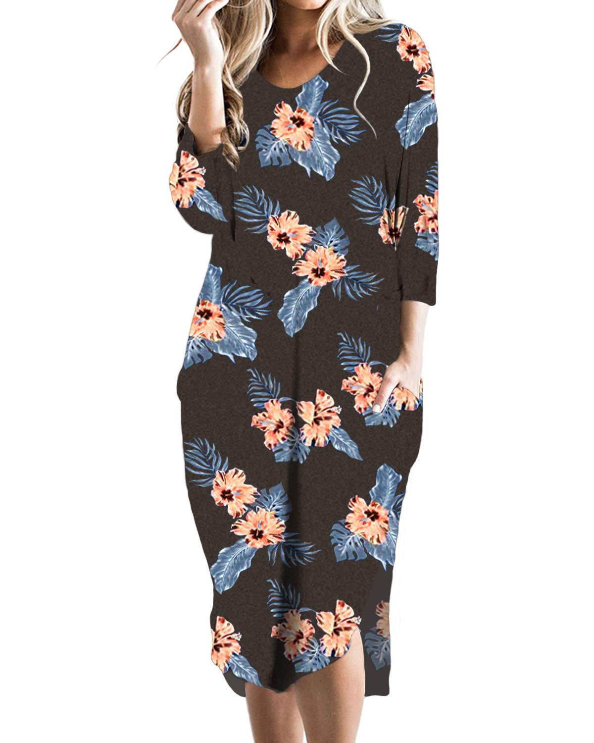 CNFIO Women T Shirt Dress Oversized Boho Stripes Dress 3/4 Long Sleeves Dresses with Pocket- Amazon.com