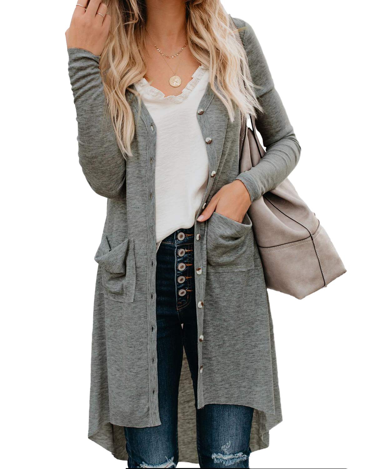 Cnfio Women Long Sleeve Knit Cardigans Open Front Rounded Hem Basic Outwear- Amazon.com