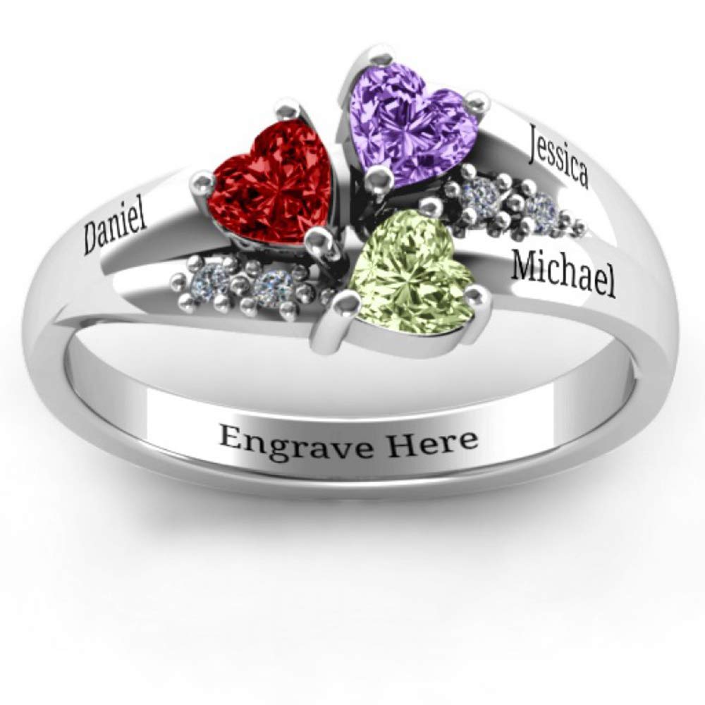 DayOfShe Personalized Promise Ring with Heart Birthstones, Custom Engraved Mother Rings with 3 Names Dainty Sterling Silver Engagement Gift for Her- Amazon.com