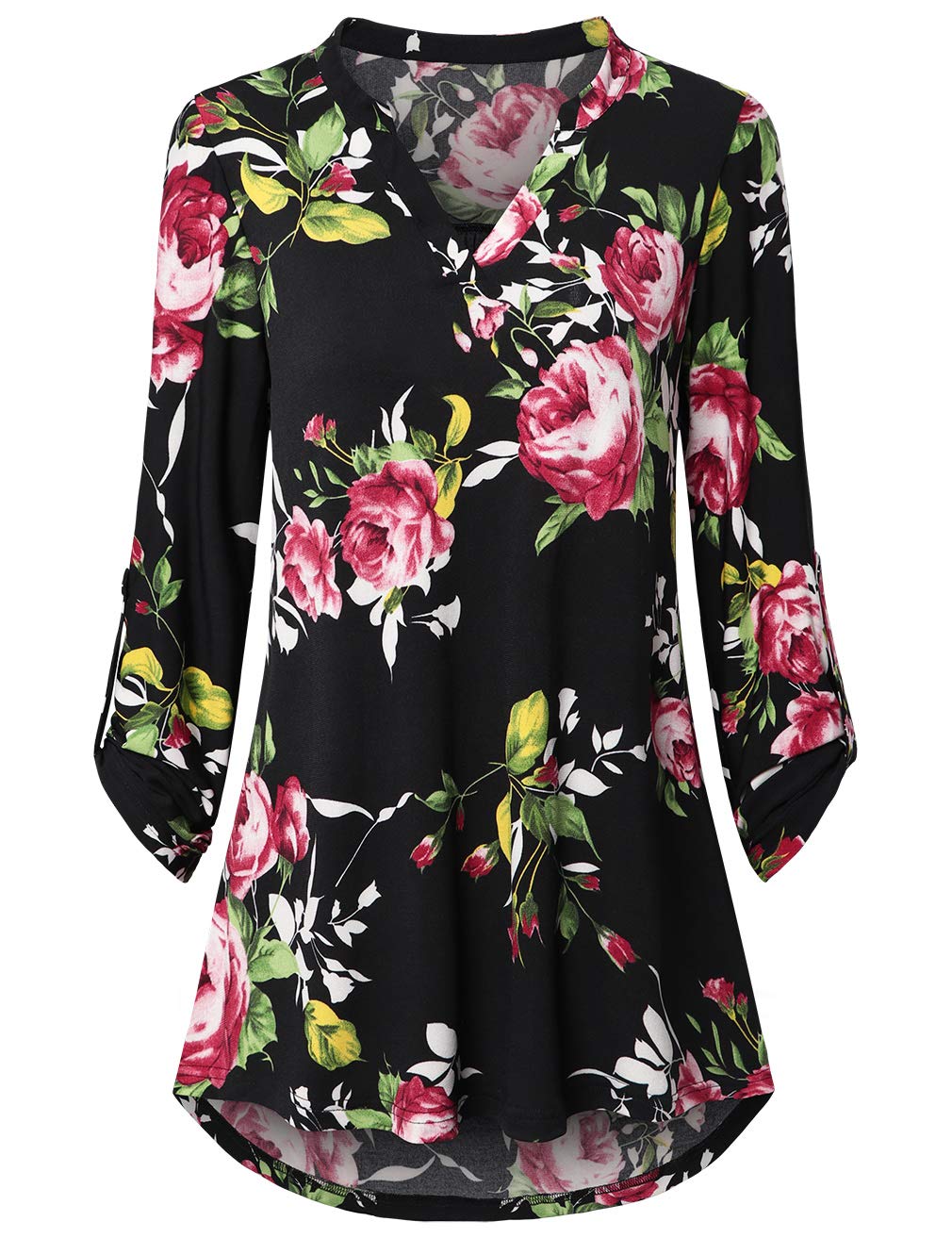 UXELY Women’s 3/4 Cuffed Sleeve Shirt Casual V Neck Pleated Flowy Loose Fit Swing Tunic Tops- Amazon.com