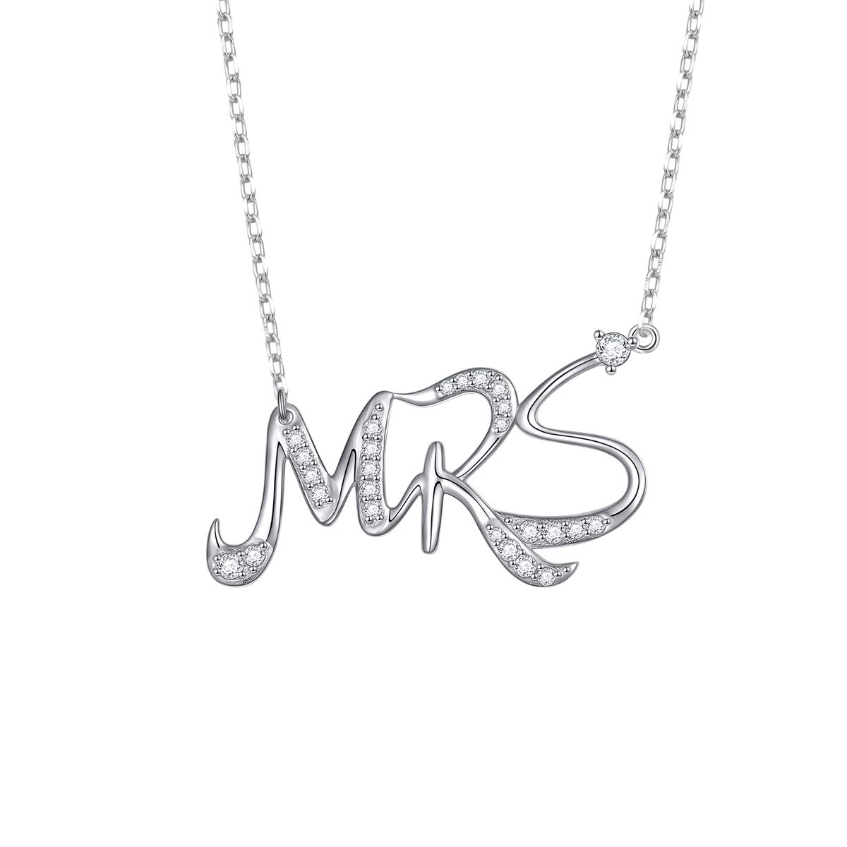 925 Sterling Silver Cubic Zirconia Future MRS Necklace for Women Girls New Bride Gifts Jewelry, 18 inch + 2 inch- Amazon.com