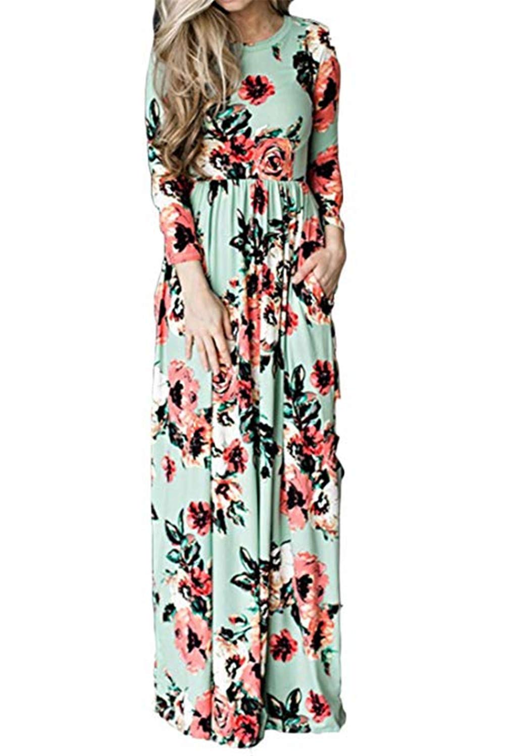 Shele Women’s Floral Maxi Dress Long Sleeve Autumn Loose Fit Long Dresses with Pockets- Amazon.com