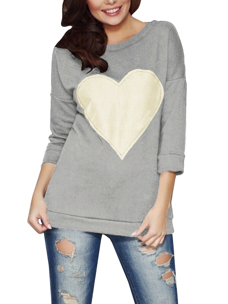 Shele Women’s Love Heart Crew Neck Sweatshirt Loose Jumper Pullover Tunic Tops- Amazon.com