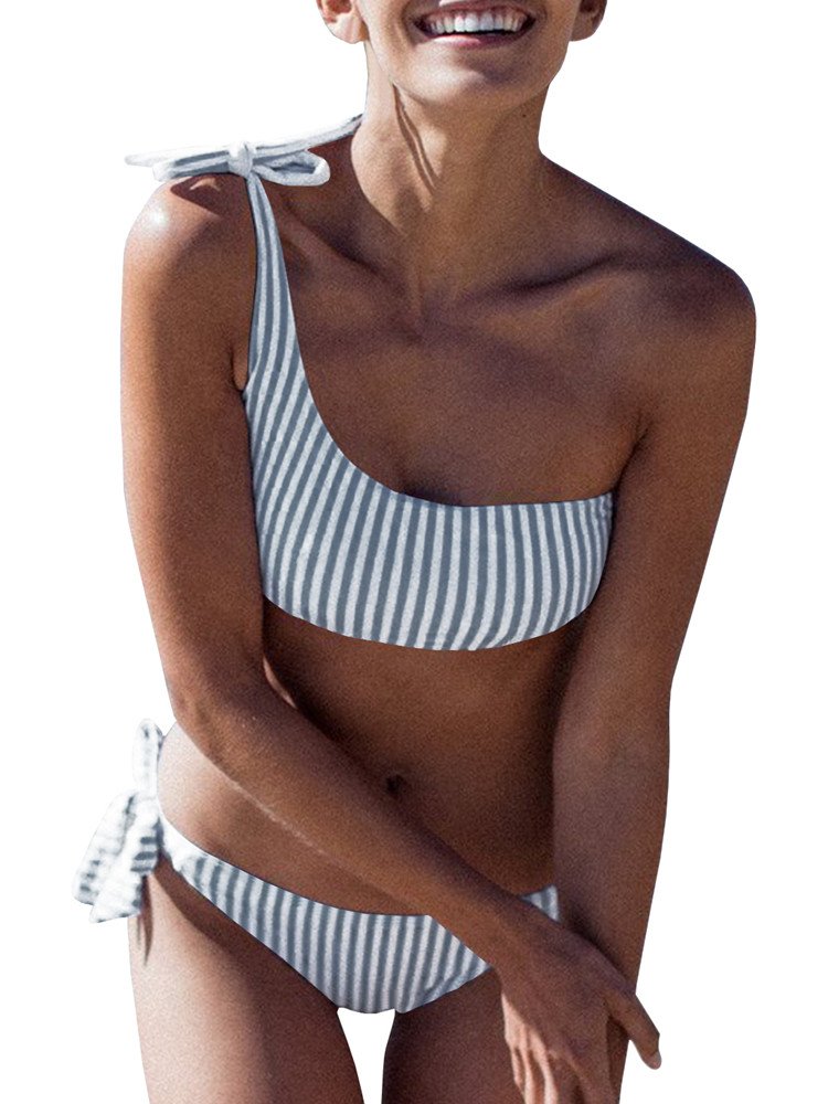 Shele Womens Two Piece Swimsuits One Shoulder Sexy Strapless Swimsuits Low Waist Bikini Set- Amazon.com