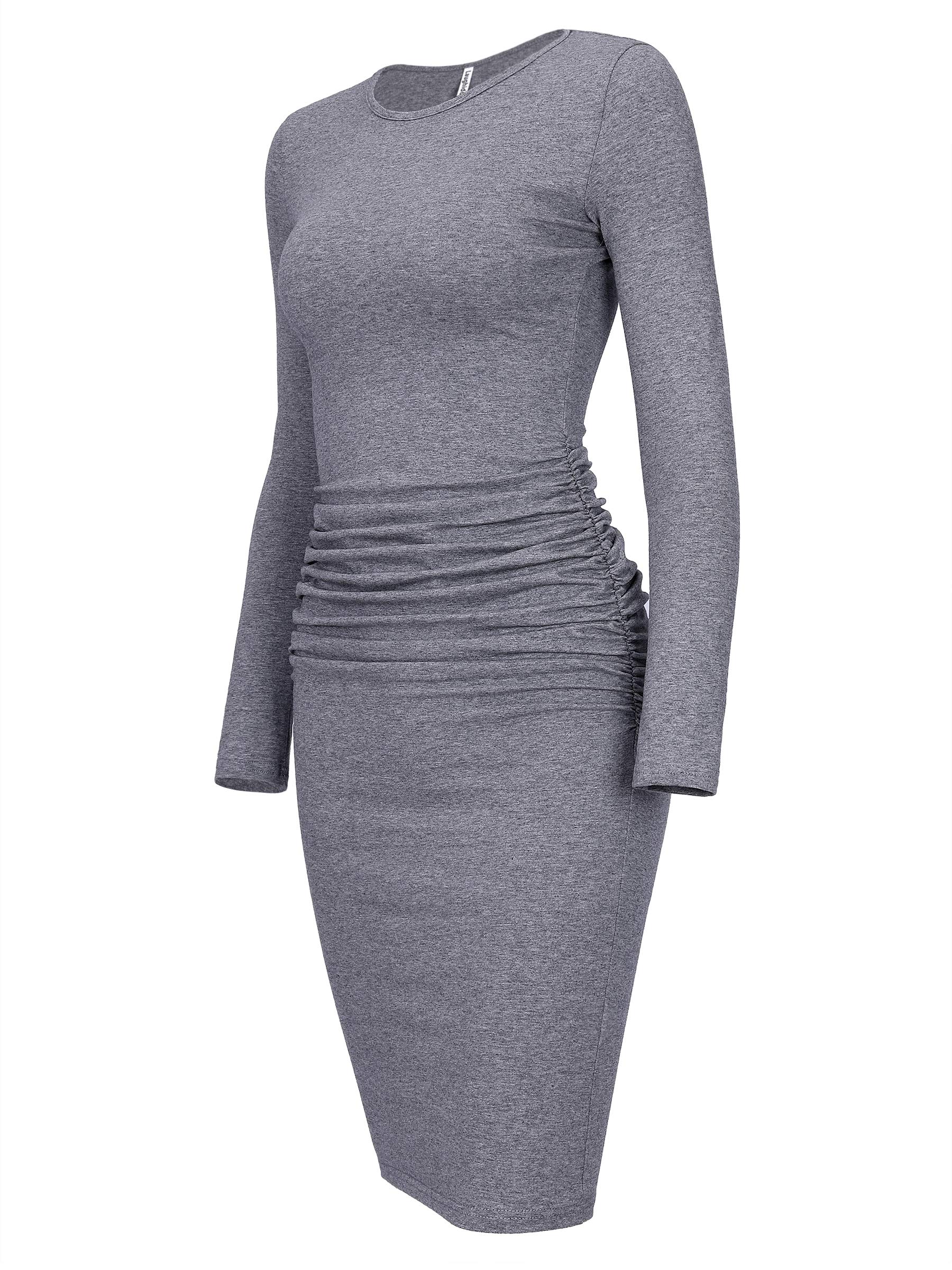 Laughido Women’s Long Sleeve Ruched Sundress Fitted Midi Casual Bodycon T Shirt Dress- Amazon.com