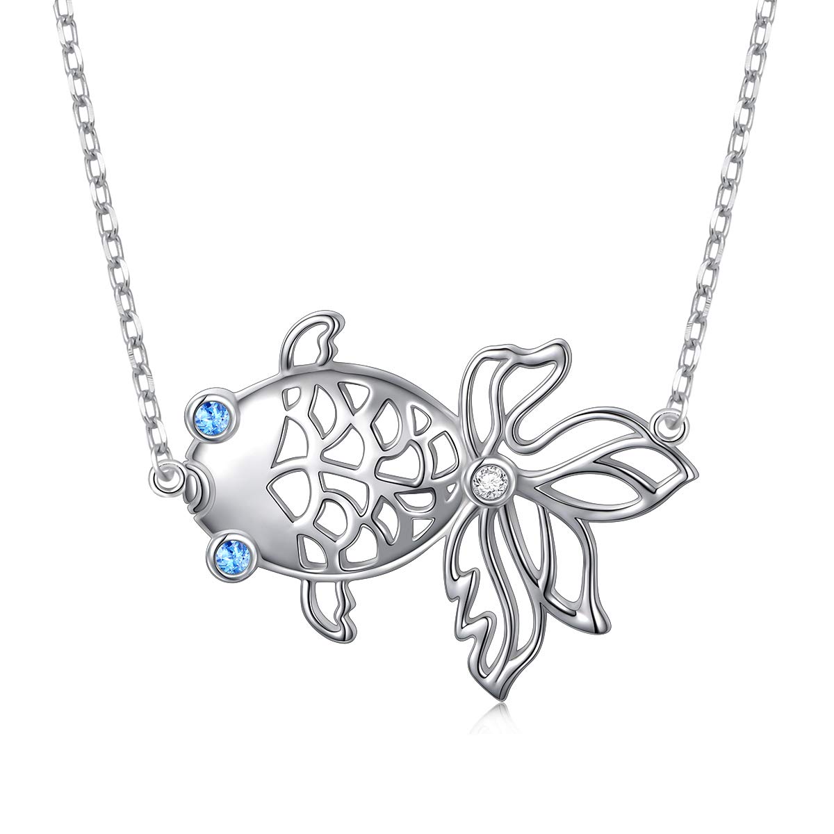 DAOCHONG S925 Sterling Silver Good Luck Charm Goldfish Fish Pendant Necklace for Women Girls Birthday Gift- Amazon.com