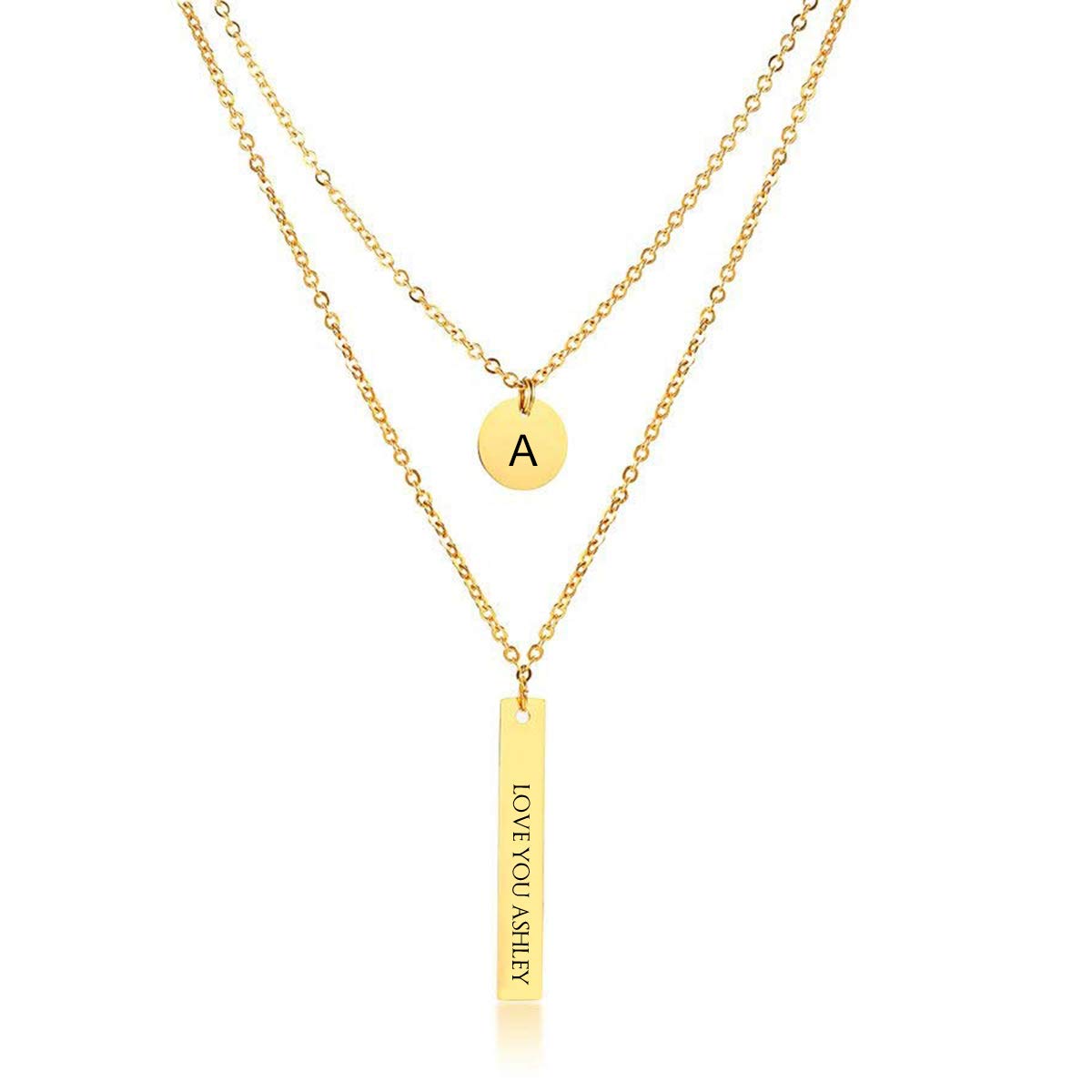 Personalized Bar Necklace, 18K Gold Plated Custom Layered Necklace Customized Engraved Pendant Jewelry Gift for Women and Girls- Amazon.com