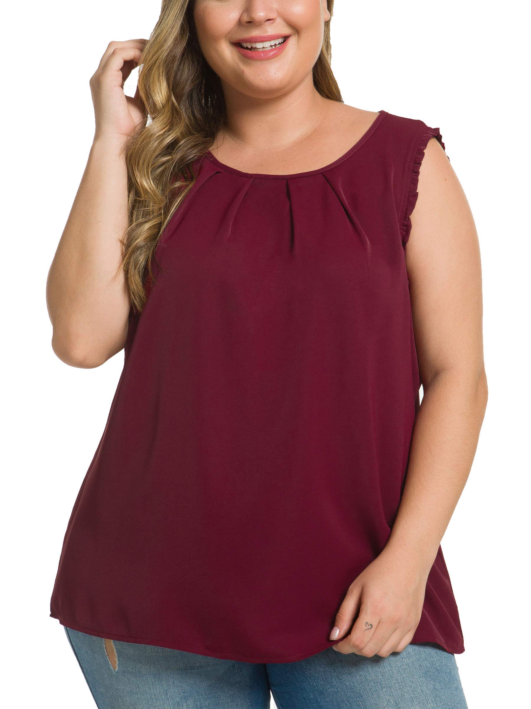 Laughido Women’s Ruffle Sleeveless Tops Pleated Casual Chiffon Tank Tops Plus Size- Amazon.com