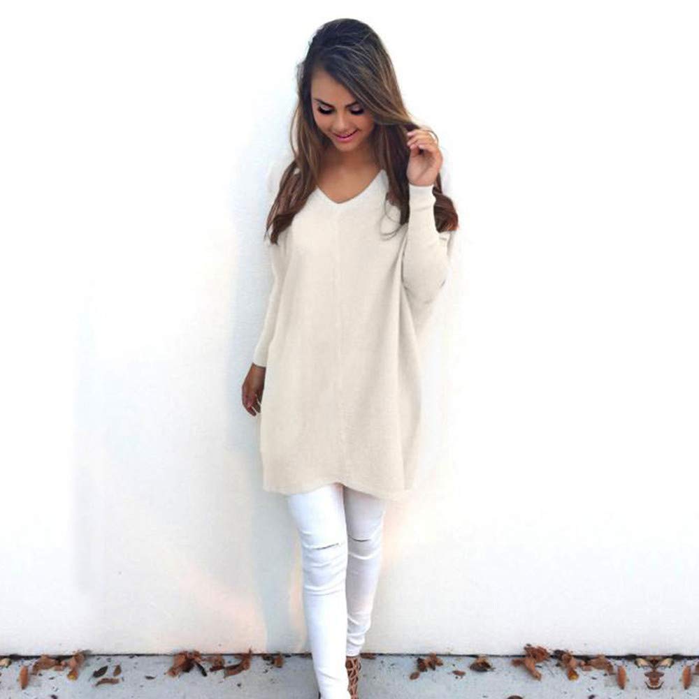 UNBRUVO Women Fashion Casual V-Neck Long Sleeve Loose Long Pullover Sweater- Amazon.com