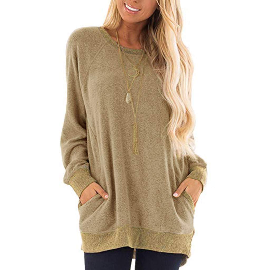 Womens Casual Color Block Long Sleeve Round Neck Pocket T Shirts Blouses Sweatshirts Tops- Amazon.com