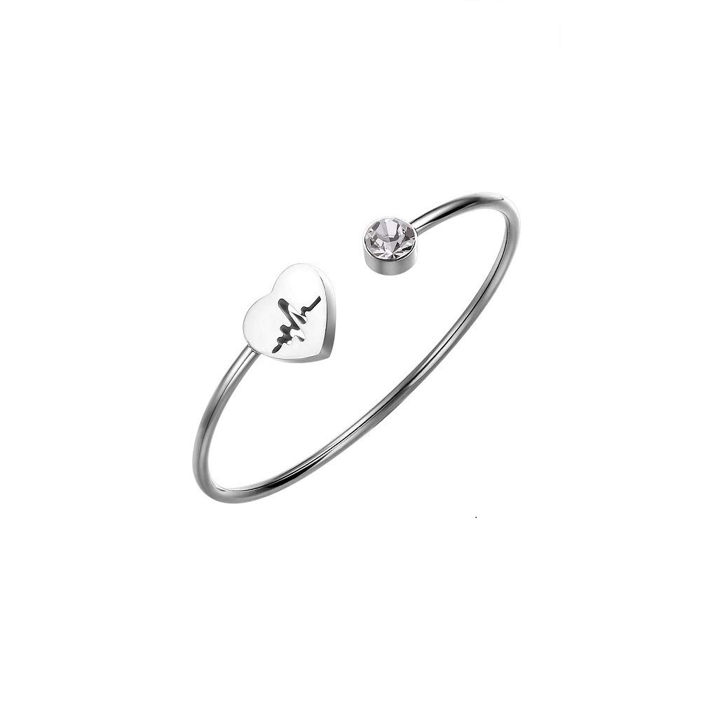 Luvalti Womens Path Symbols – Love Nurse Bracelet, Heartbeat EKG Adjustable SilverOpen Cuff Heart Bangle Bracelet- Amazon.com