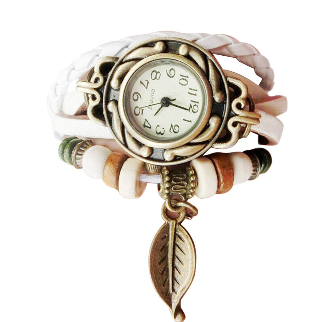 Cliramer Women Quartz Wrist Watch Leather Strap, Retro Winding Bracelet Leaf Pendant Analog Quartz Lady Watch- Amazon.com