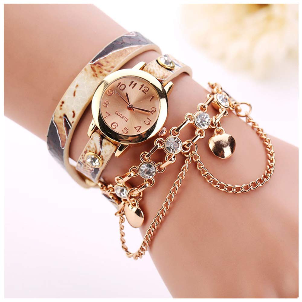 Cliramer Womens Watches, Ladies Watches Rhinestone Rivet Chain Quartz Bracelet Watches for Women Leather Band Fashion Casual Business Minimalist Watches- Amazon.com