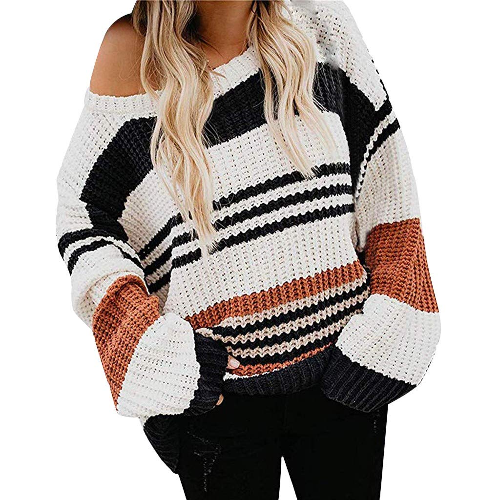 2020 Women’s Long Sleeve Crew Neck Striped Color Block Oversize Loose Knitted Pullover Sweater Tops- Amazon.com