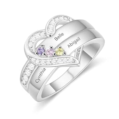 💖 💃Why Consider Zoesky Personalized Heart Ring with 2-5 Birthstones Custom Name with 5A Cubic Zirconia Birthstones Custom Ring for Mom Custom Mother Daughter Name Ring with 2-7 Names for Family Mother's Day Gifts? 💃-Various styles available. 💃-Unique custom pattern, design your own fashion silver ring 💃-High polished surface, smooth and easeful, lightweight and comfortable to wear. 💃Any name or texts can be customized to the freestyle mom ring 💃Jewelry Care Tips:▸Avoiding the chemicals and being