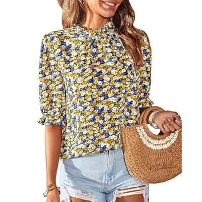 30.0% Off[BTFBM] BTFBM Womens Tops 2026 Dressy Casual Blouses Summer Spring Clothes Mock Neck Short Sleeve Shirts Business Work Fall Outfits
