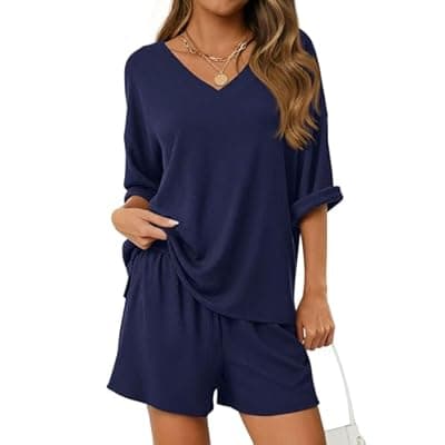 50.0% Off[PRETTYGARDEN] PRETTYGARDEN Womens 2 Piece Sets 2026 Oversized Vneck Half Sleeve Tops Shorts Lounge Set Casual Summer Travel Beach Outfits