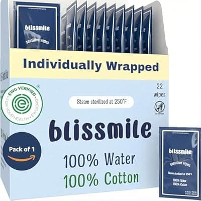 15.0% OffBlissmile 100% Water & Cotton Wet Wipes Travel Size - Individually Wrapped - Fragrance & Preservative-Free for Baby, Women & Sensitive Skin - Gentle Hand, Face, Body & Feminine Care - 22 Count